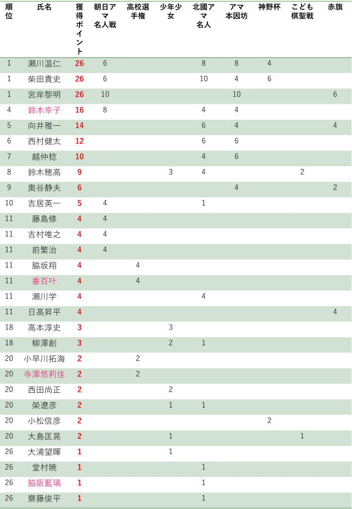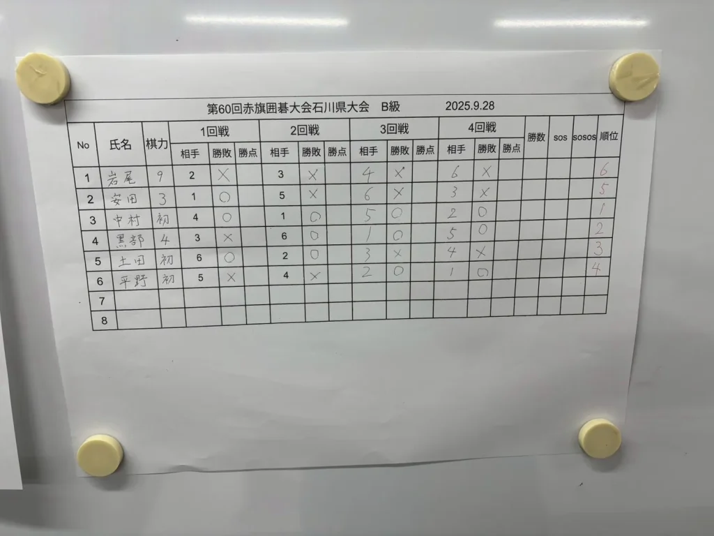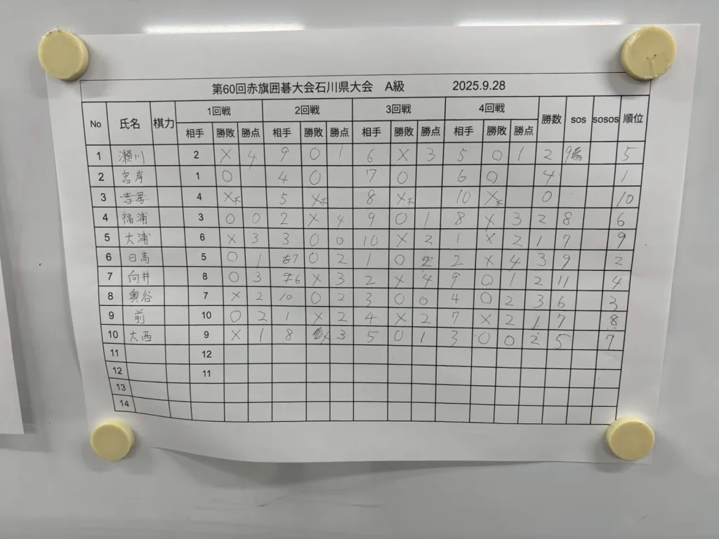 そして、石川県囲碁ランキング赤旗大会を反映した結果はこちら