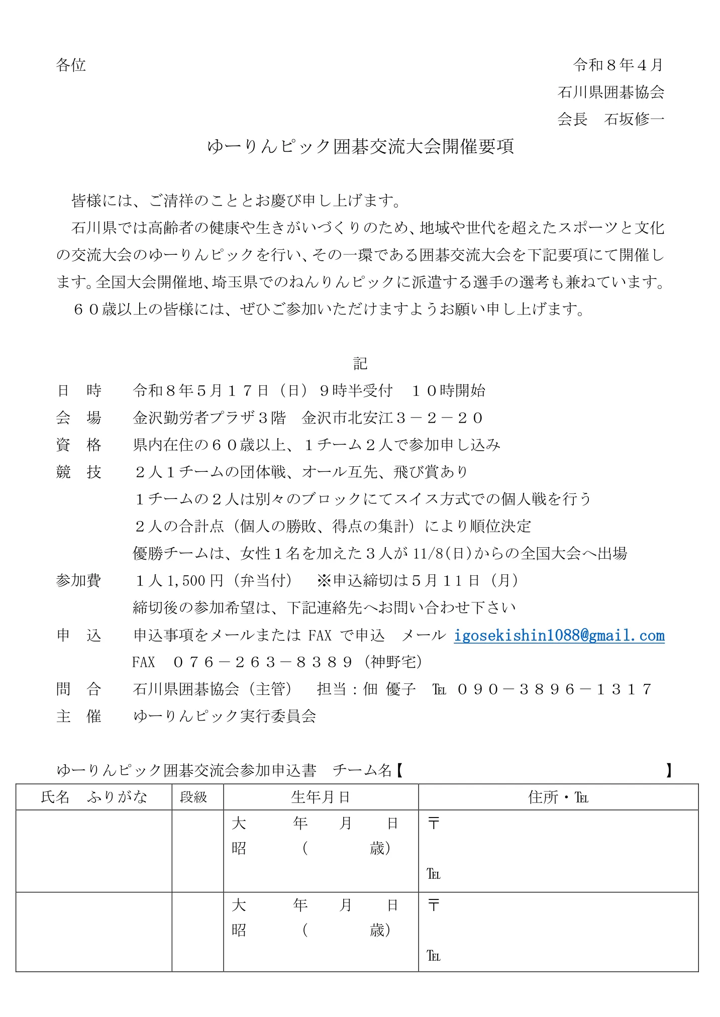 石川県囲碁協会(主管)