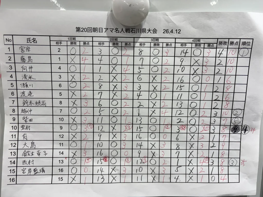 令和8年4月12日(日)に『第20回朝日アマチュア名人戦石川県予選』が開催されました。