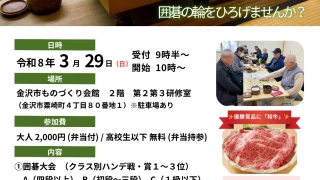 3/29(日)に金沢市ものづくり会館にて石心支部主催の「内灘囲碁協会 応援囲碁フェスティバル」が開催されます✨石心支部HP クラス別大会、クイズ大会、入門初心者教室があり、豪華賞品や中学生以下のお子さんには人気キャラクターの...